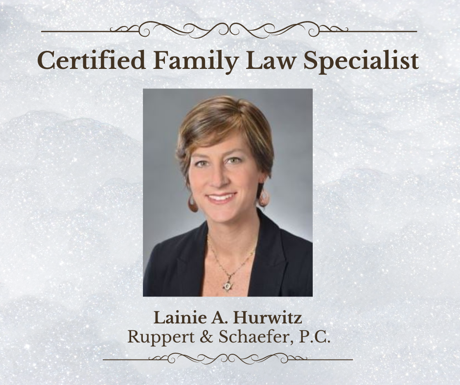 Ruppert & Schaefer, P.C. is proud to announce that Lainie A. Hurwitz has earned the designation of Certified Family Law Specialist as certified by the Family Law Certification Board.